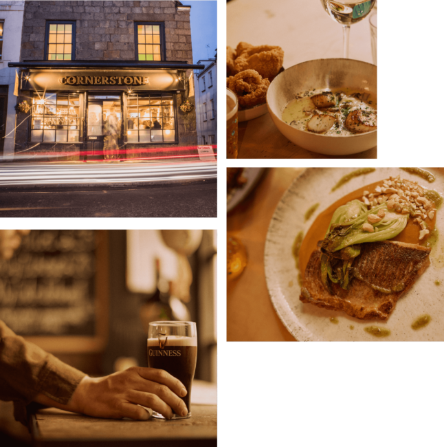 Tucked away on Cornet Street just a stone’s throw from the centre of St Peter Port, you’ll find the iconic Cornerstone. With a rich history dating back to the 1700s, its recent renovation has made it as cosy in the winter as it is charming in the summer.